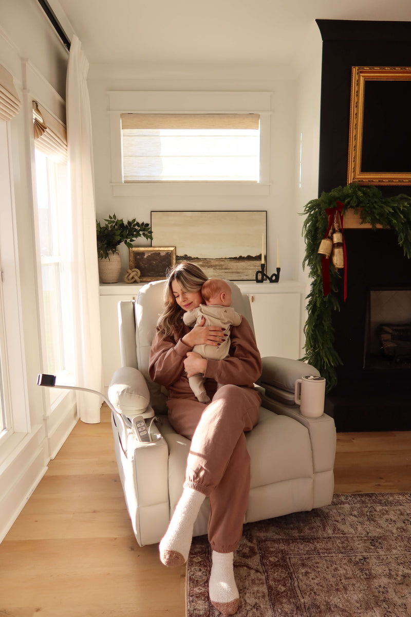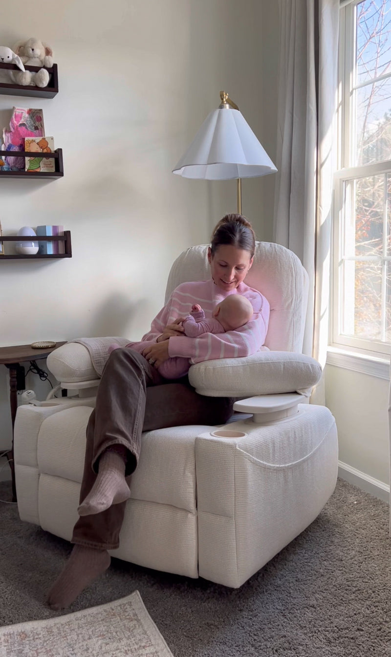 "...includes the Rocking Nursery Chair, complete with cup holder, phone holder, and built-in chargers — a command center worthy of the 24/7 parenting operation..."