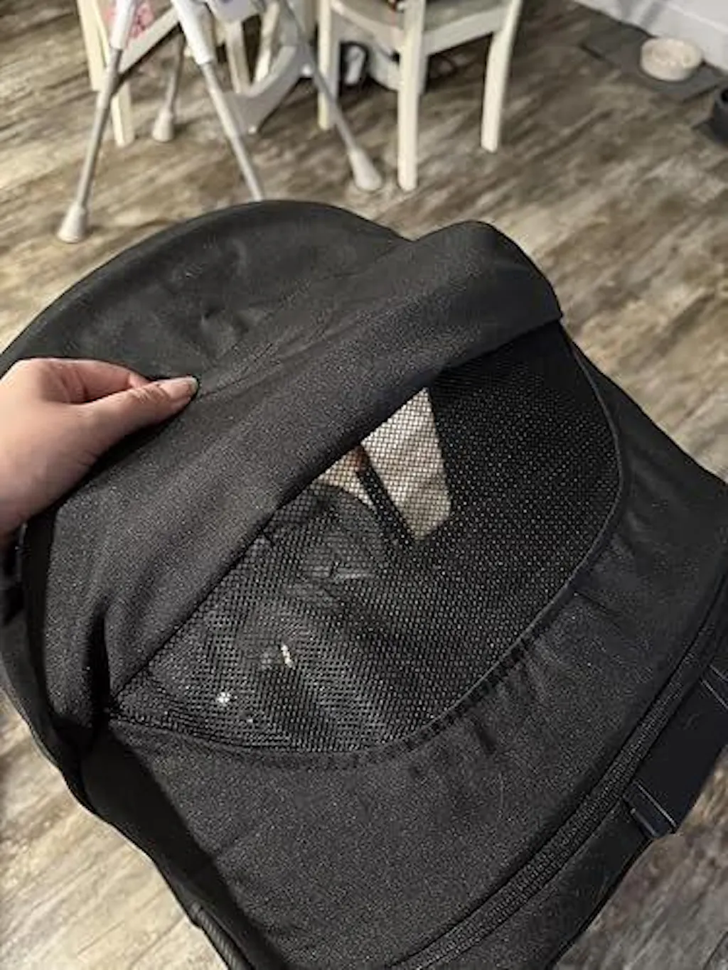 5. The seat cushion can be removed to reveal a mesh back for air flow for the warmer days and hotter kids.