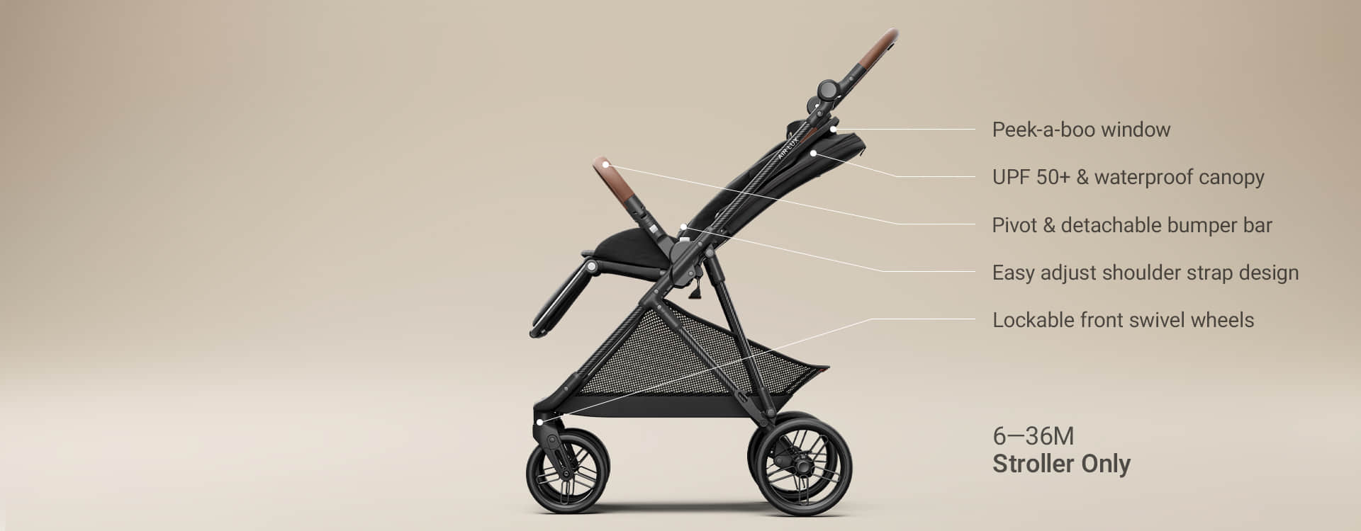 Crafted with a premium carbon fiber frame, the Air Lux weighs just 15.8 lbs for lightweight everyday strolling without compromising strength and durability.