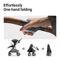 Fold and stow in just seconds, all while keeping your baby safety in your arms.