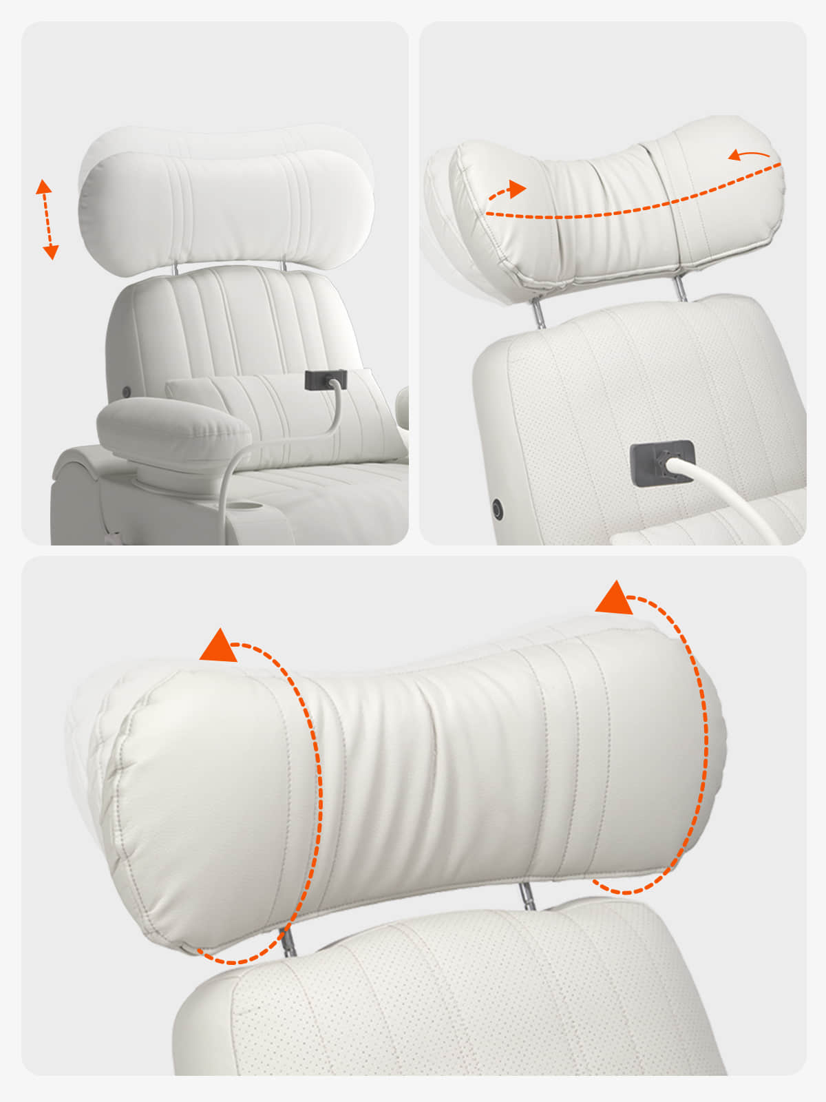 The adjustable headrest tilts, lifts, and wraps to support your head and neck, easing tension and keeping you comfortably aligned.