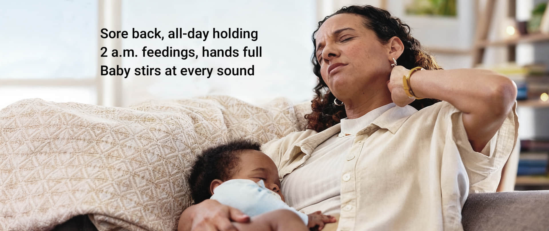 Mamazing HugAssist™️ arm system replaces unreliable pillows, providing stable, continuous support — while you nurture your baby, it nurtures you.