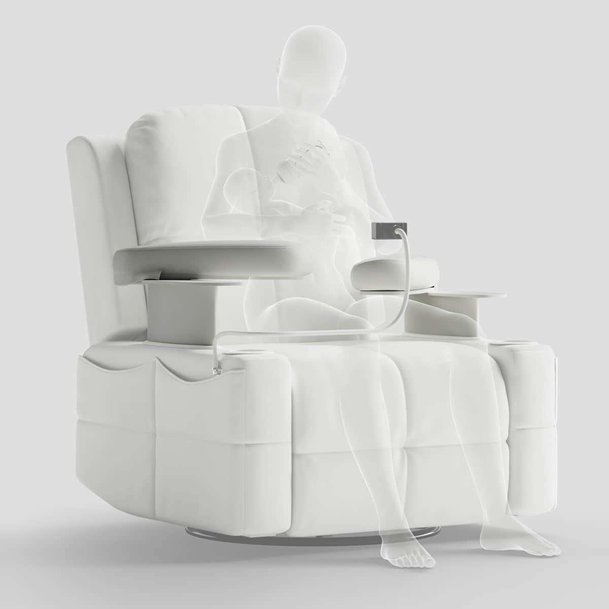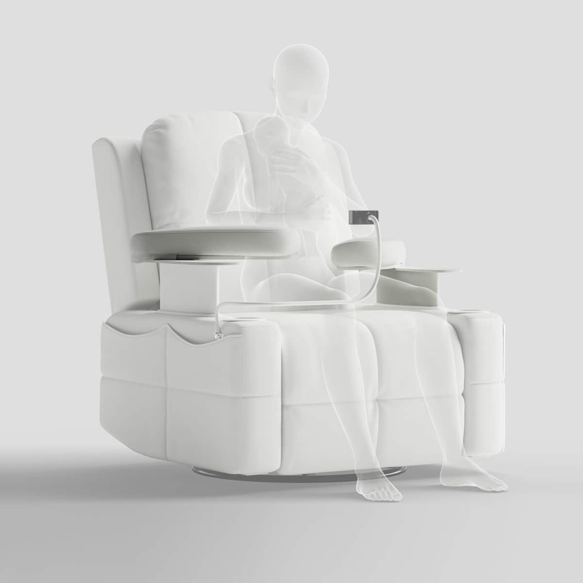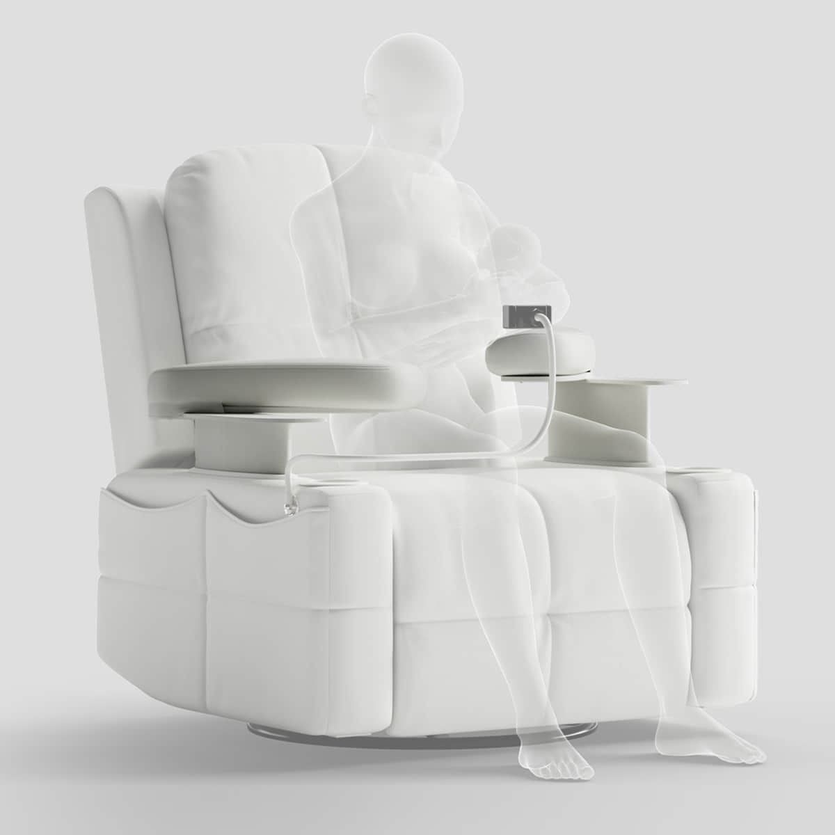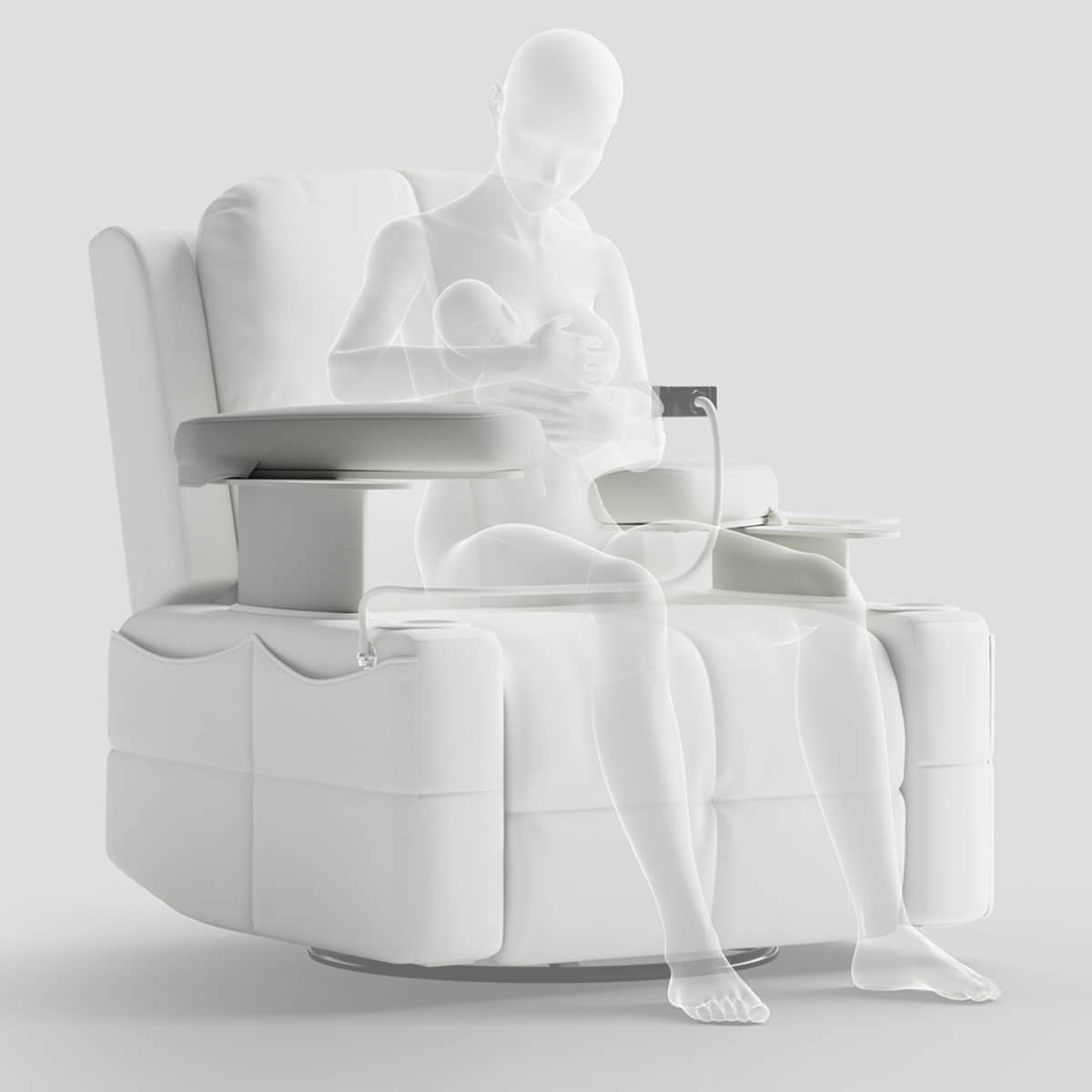 Adjustable, rotatable armrests for comfortble breastfeeding support.
