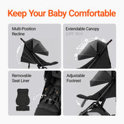 Thiscompact strollercomes with a universal organizer, including an insulated cup holder and detachable phone pocket. The spacious under-seat basket holds essentials like diaper bags, making it practical for travel or quick trips. Thefolding strolleralso includes a travel bag for easy carrying, enhancing its portability as atravel stroller for infants.