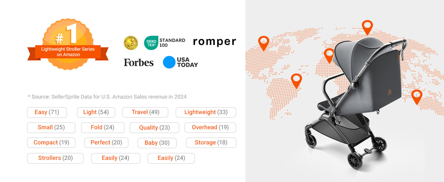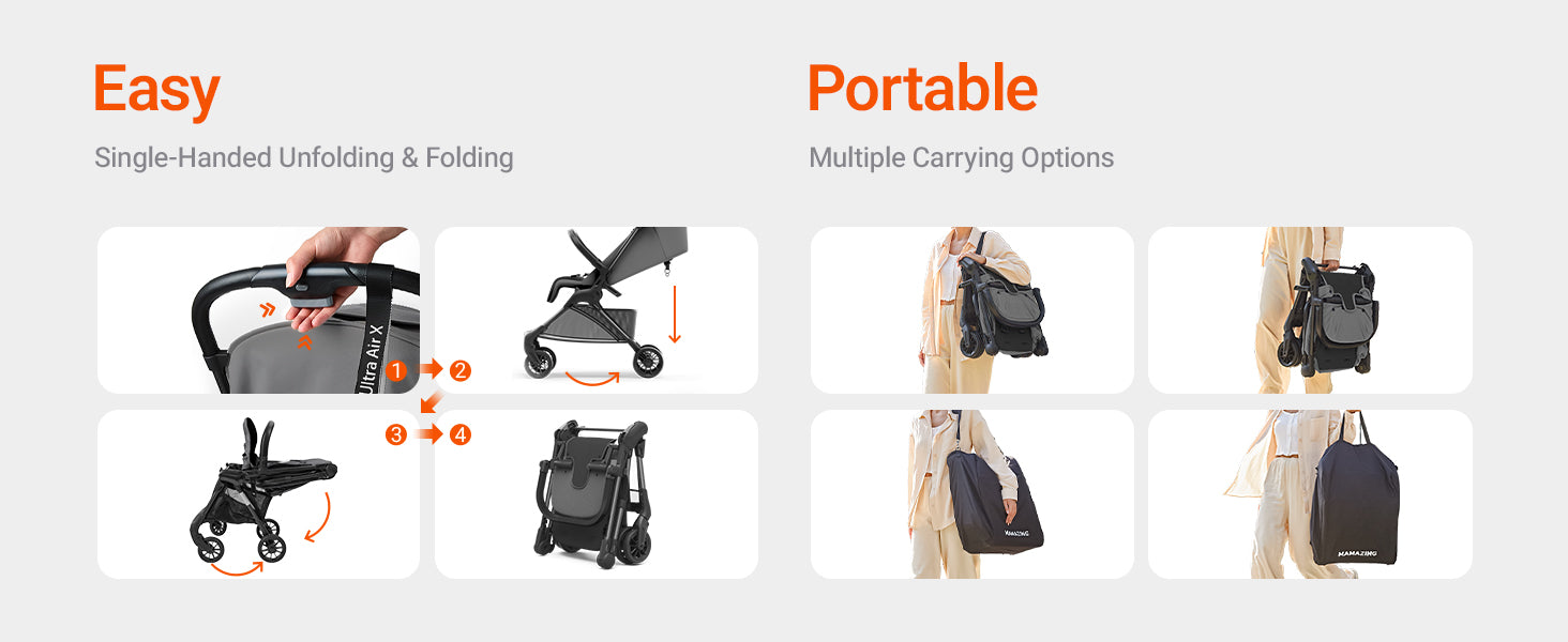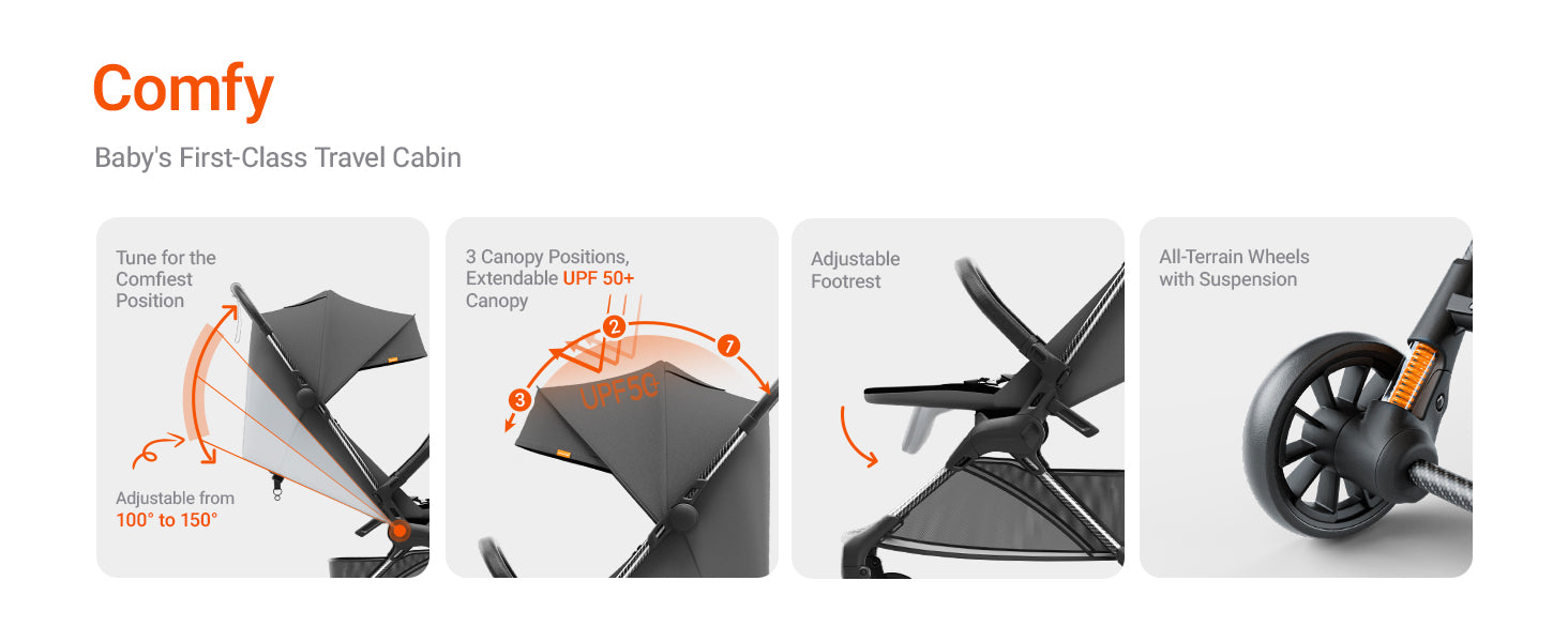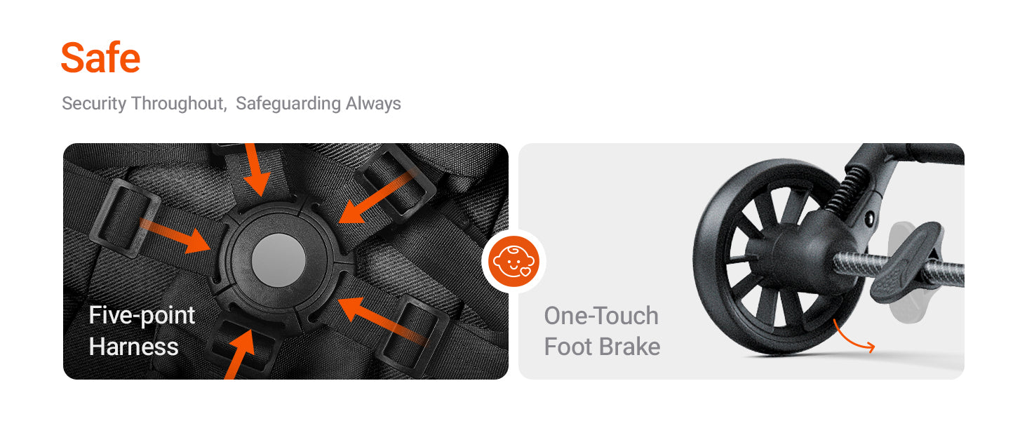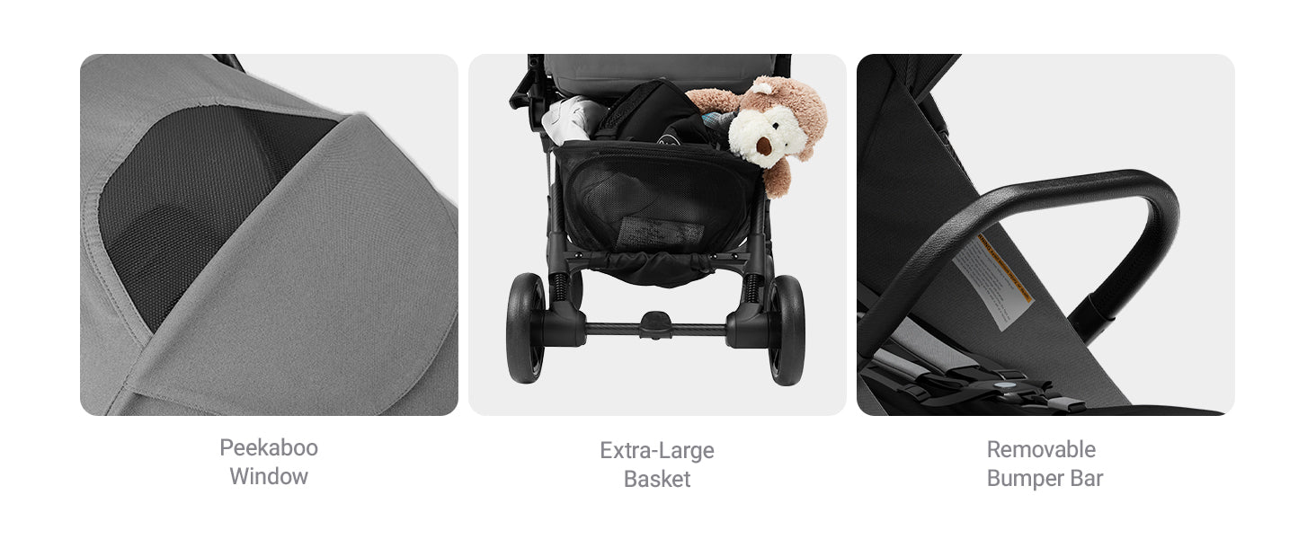 - Additional Features: 5-Point Safety Harness, Adjustable Canopy, Lightweight, Storage Basket, portable